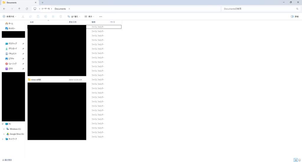 画像では、Documentsフォルダ内に📁minecraftBEを作成しました。フォルダ名はなんでも大丈夫です。