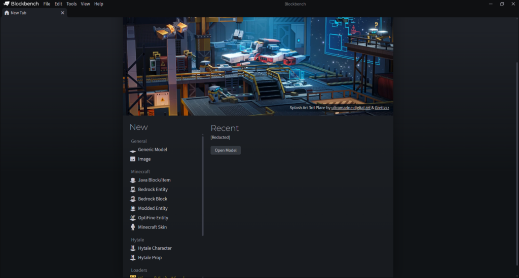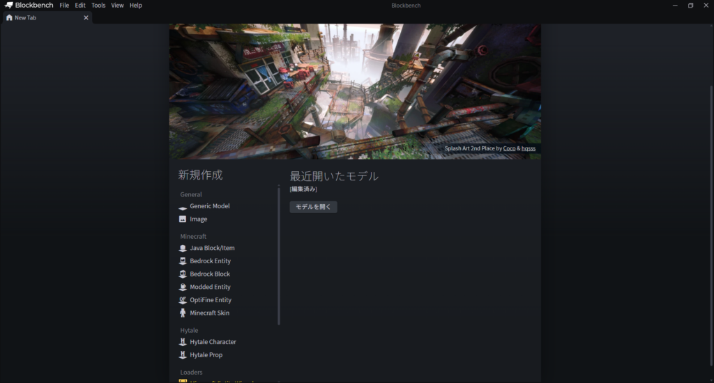インストール後、Blockbenchを開くと以下のような画面になると思います。