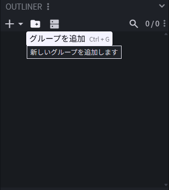 ボーンはOUTLINERの中にある📁のマークのボタンを押すことで新しく出すことができます。グループを追加と名前になっていますが、内部ではボーン(bone)として扱われています。
