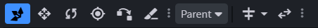 キューブやボーンの回転する始点の位置を移動するのに使います。右上のTRANSFORM内のCenterでキューブやボーンのピボット位置を直接、座標で指定することもできます。