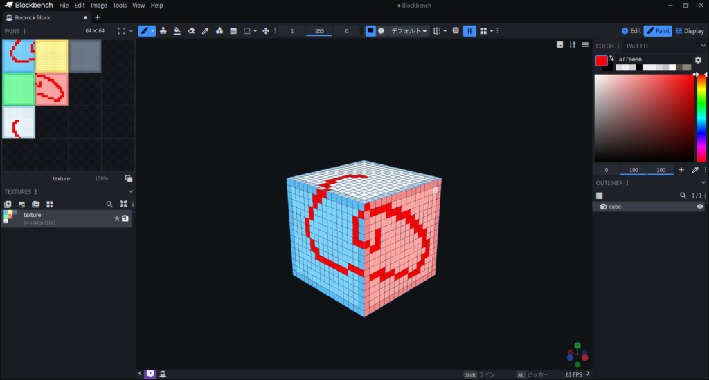 Blockbenchには作成したモデルにテクスチャを作るペイント機能があります。
